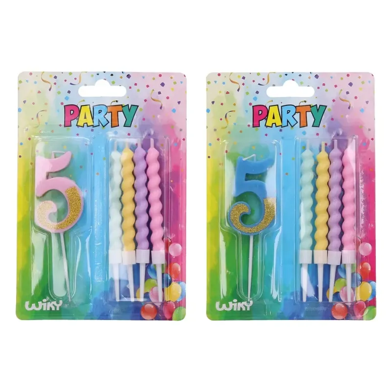 Balenie obsahuje : sviečku číslo: 5 a 4 farebné sviečky2 farby : ružová, modrá