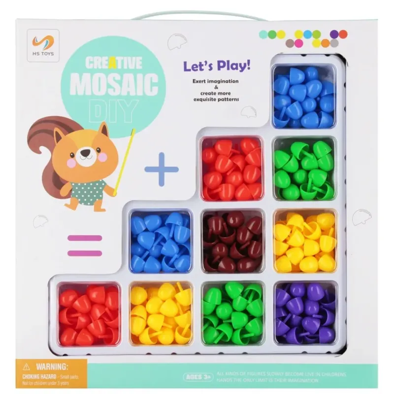 Rozvíja kreativitu, manuálnu zručnosť a jemnú motoriku.Obsah sady: plastové mozaikové prvky, 3 x šablóna