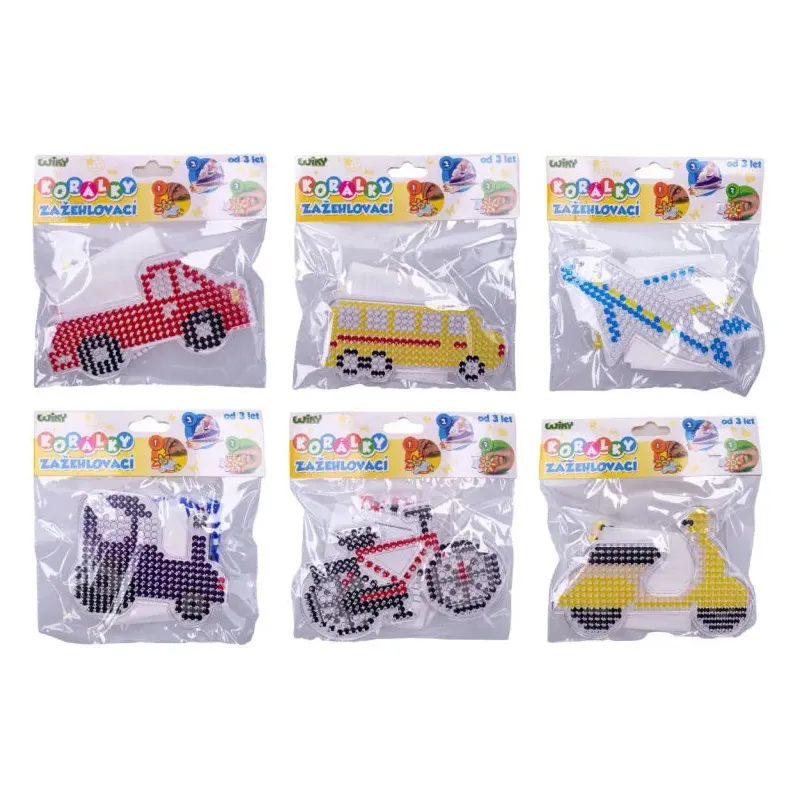 Zažehľovacie korálky set - MIX 6 rôznych vzorov - auto, skúter, traktor, lietadlo, bicykel a autobus.