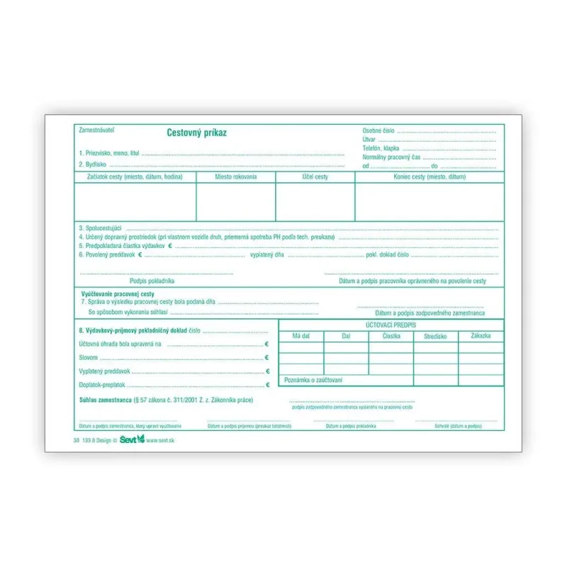 Tlačivá cestovné príkazy 301328, NA OBJEDNÁVKU