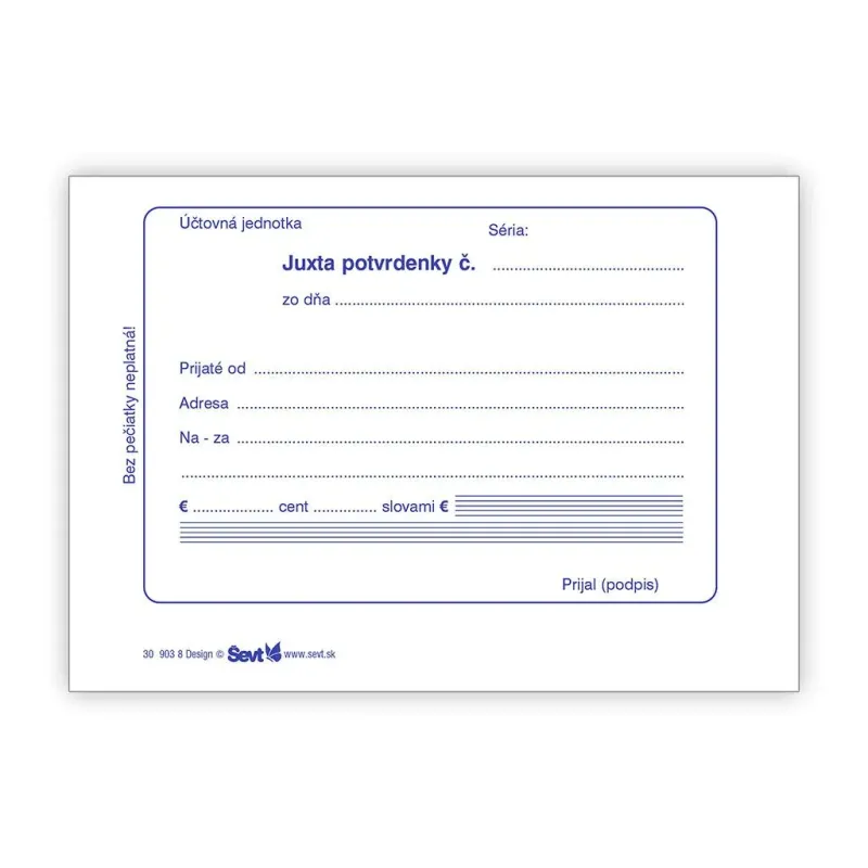 Praktický a jednoduchý nástroj na vystavovanie potvrdeniek.Samopriepisová funkcia a číslovanie zaisťujú prehľadnosť a presnosťzáznamov. Ideálny pre podnikateľov, administratívu alebo každodennépotreby evidencie.