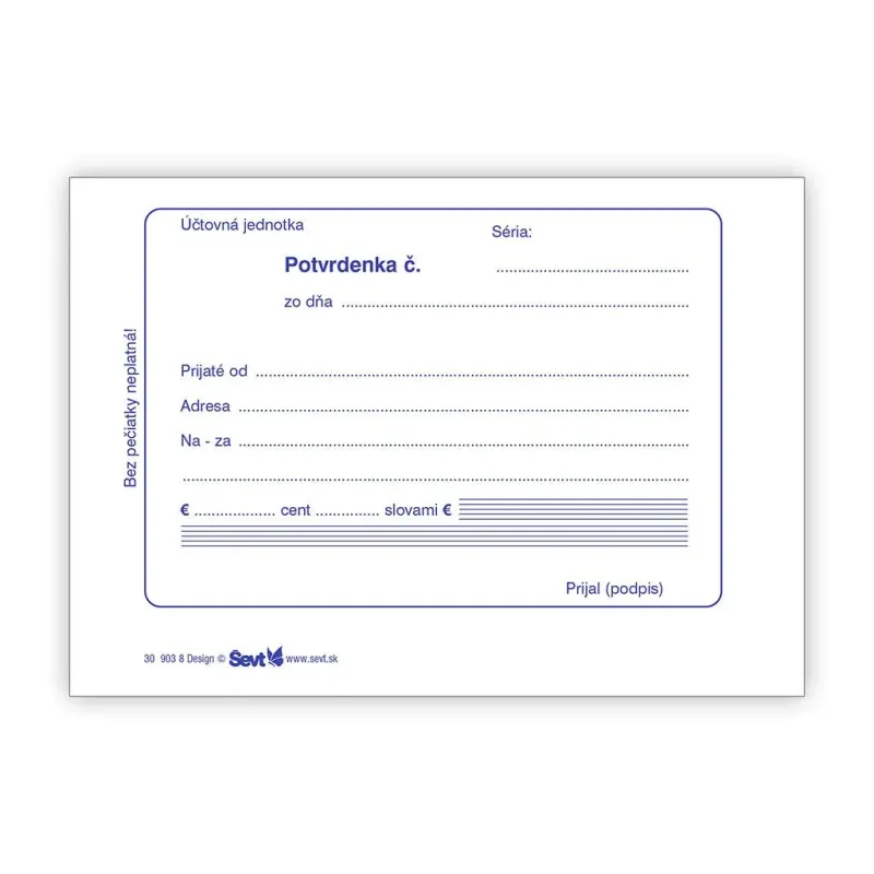 Potvrdenka (číslovaná) – Samopriepisový blok