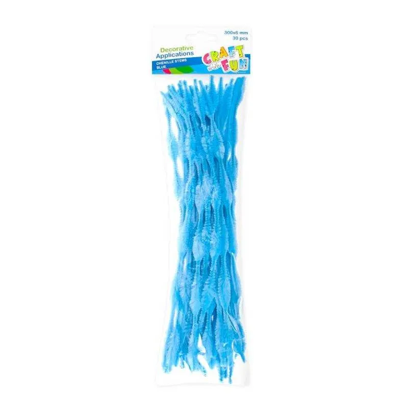 Chlpatý dekoračný drôtik v belaso modrej farbe,vhodný na kreatívne použitie a ručné práce.
