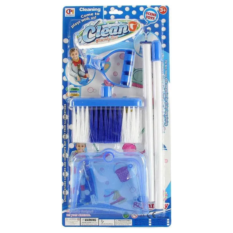 Plastová bielo-modrá sada na upratovanie.