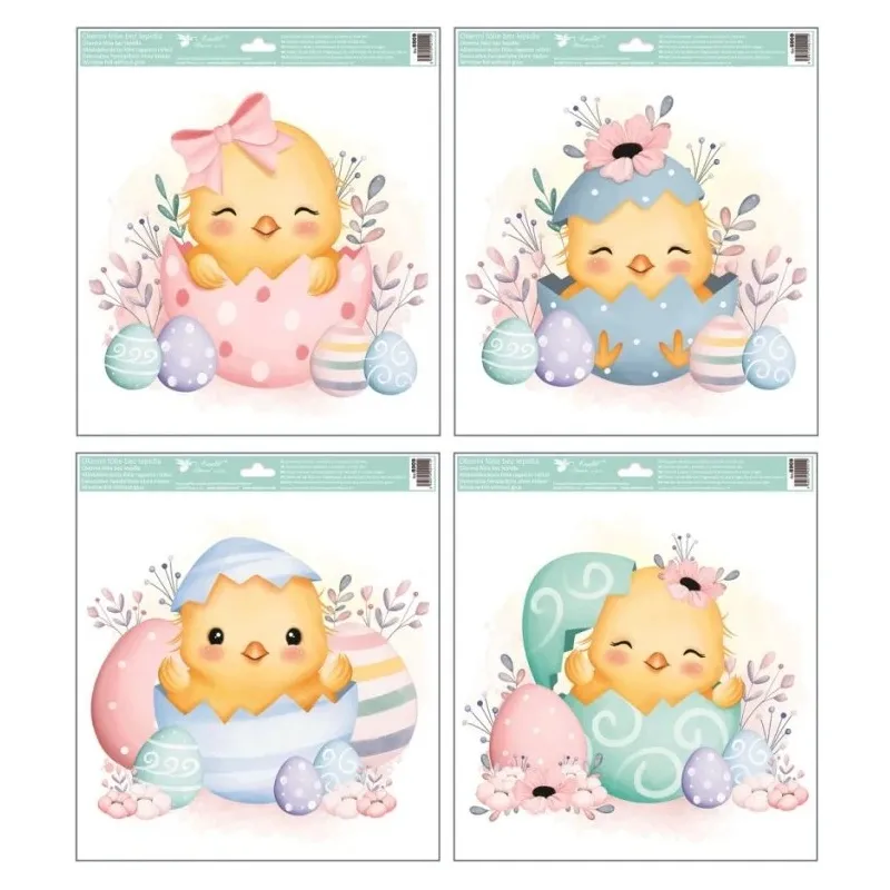 Dekoračné okenné fólie – s glitrami, Kuriatka vo vajíčku