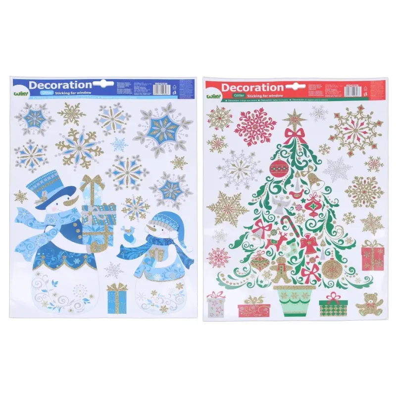 Fólia sa ľahko odlepí a dá sa premiestniť.Rozmery : 29 x 41 cm2 motívy : stromček, snehuliak