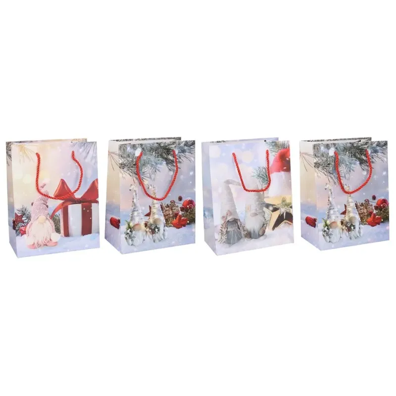 Vianočná darčeková taška Darčeková taška vyrobená z kvalitného tvrdého papiera s rôznymi motívmi, vhodná na jednoduché balenie suvenírov a darčekov.