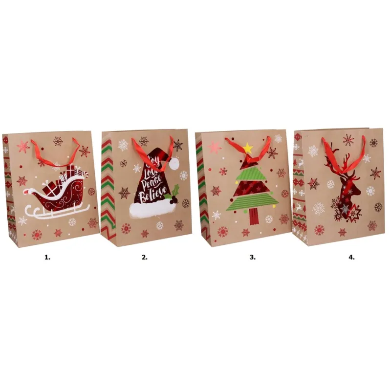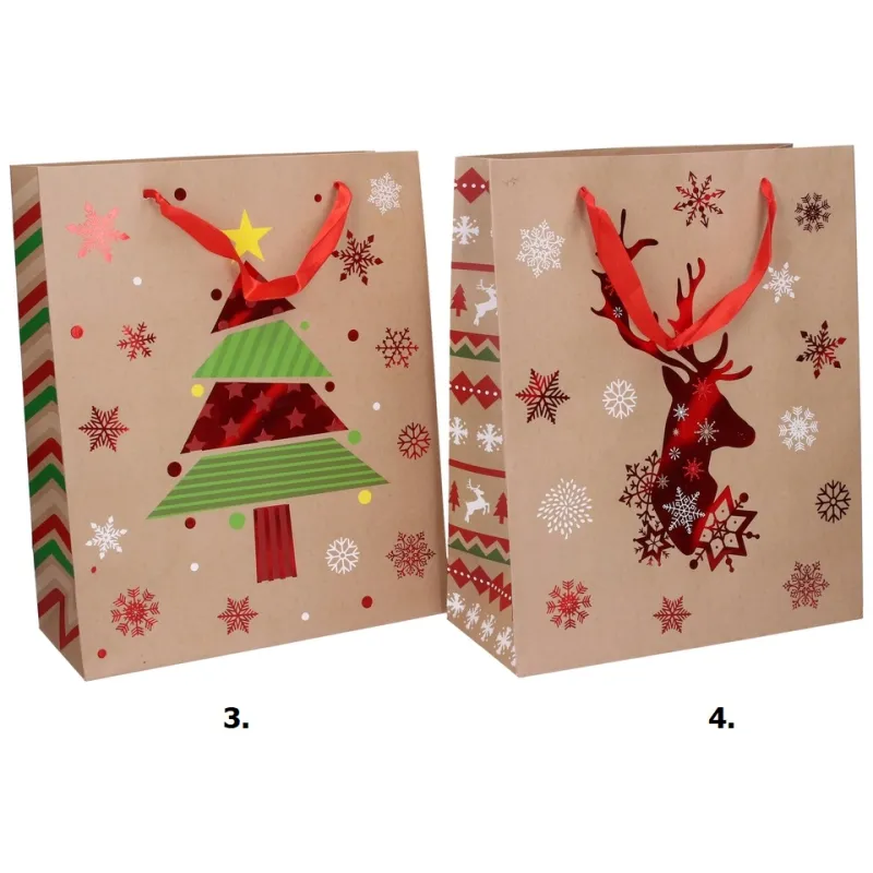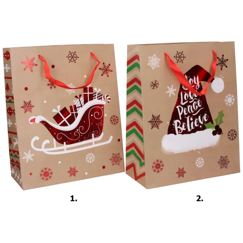 Darčeková taška vyrobená z kvalitného tvrdého papiera s rôznymi motívmi, vhodná na jednoduché balenie suvenírov a darčekov.
