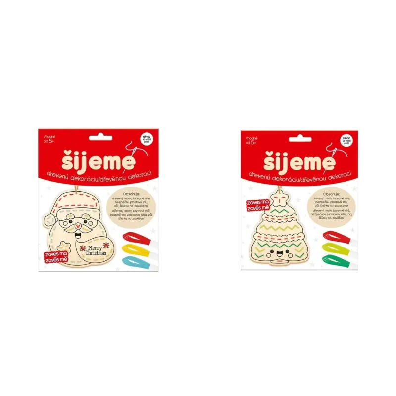 Kreatívna sada obsahuje dreveného Mikuláša alebo vianočný stromčeks vyrezanými dierkami s veľkou plastovou ihlou s tupým hrotom. Tiežobsahuje farebné nite, korálky a je možné ho zavesiť napríklad v detskejizbe na stenu, poličku alebo svetlo.