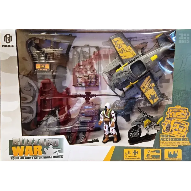 Vojenská sada Blizzard Wars lietadlom a veľkým množstvom príslušenstva.