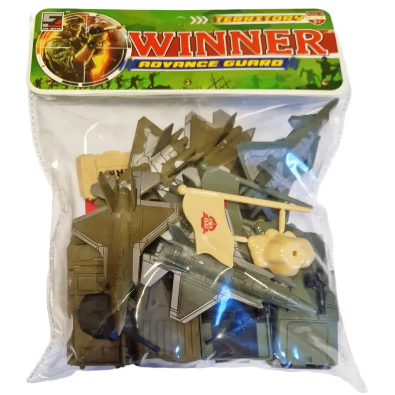 Sada obsahuje, lietadlá (10cm), tanky, autá (8 cm), vlajky a pod.Počet v sade 17 kusov