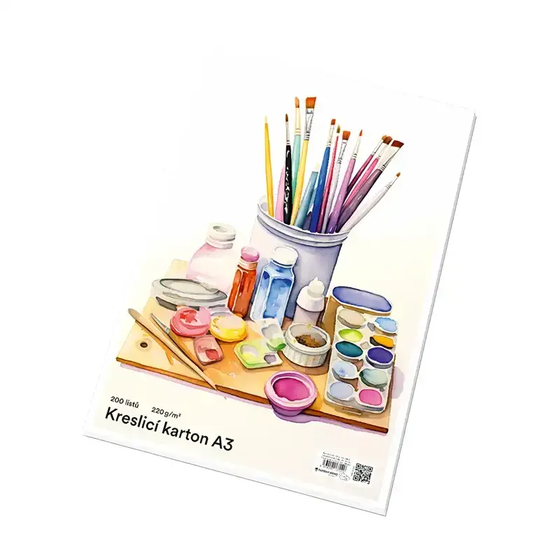Kresliaci kartón alebo akvarelový kartóns plošnou hmotnosťou 220g/m2 je vhodný pre suché aj mokré výtvarnétechniky. Jedna strana je hladká a druháporézna s hrubšou štruktúrou, na ktorej vyniknú hlavne kresbyceruzkou, uhľom, pastelkami, voskovými pastelkami, kriedou, pastelomi tušom. Vďaka vyššej gramáži sa hodí na maľbu vodovými,akvarelovými, temperovými farbami alebo fixkami.