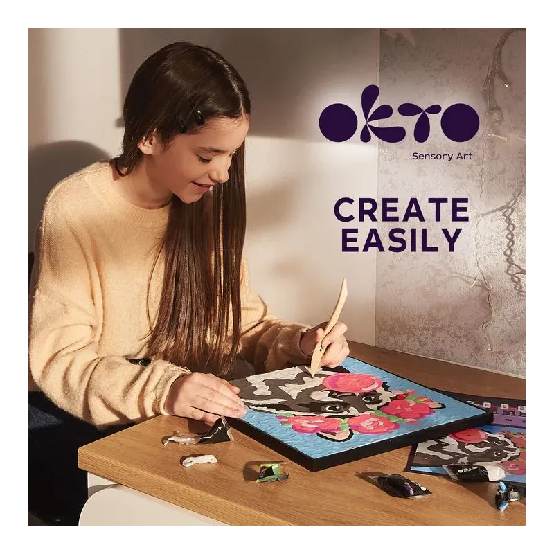 OKTO kreatívna modelovacia sadarozvíja jemnú motoriku a koncentráciumá mäkkú textúrupodložka 29 x 29 cms predkresleným motívom