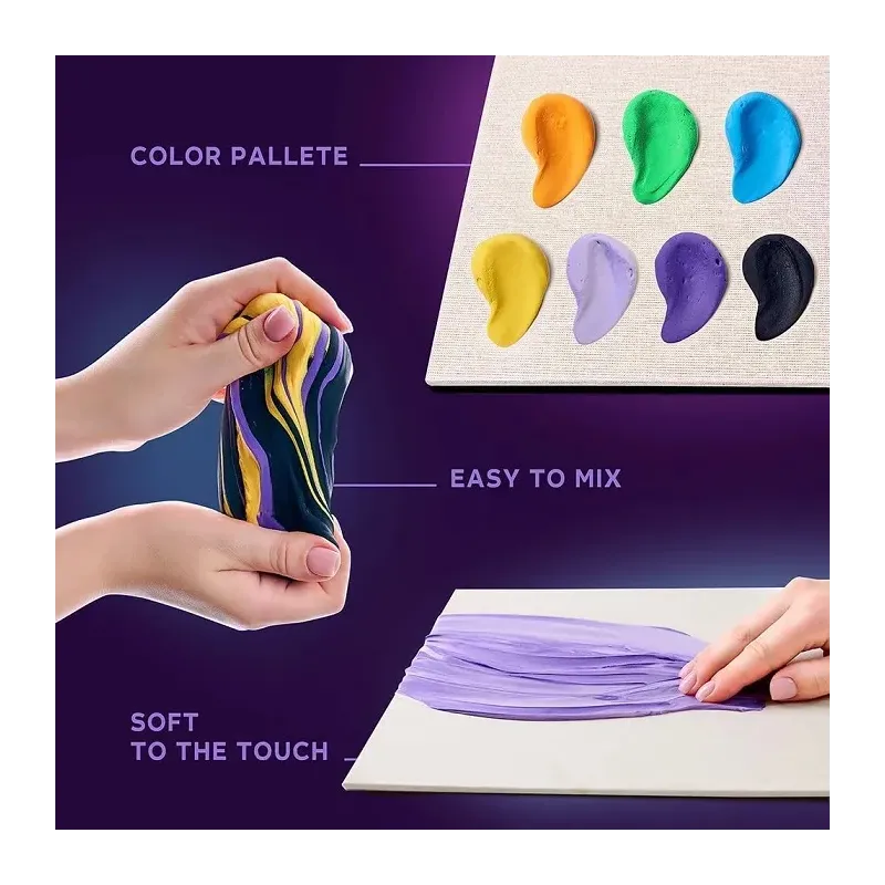 Vďaka unikátnej receptúre samotvrdnúcej hmoty, ktorá sa nelepí na ruky a je ľahko formovateľná, môžete vytvárať obraz bez obáv zo škvŕn.
