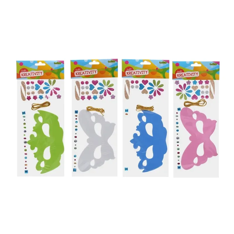 Obsah balenia: maska, povrázok, ozdoby4 farby : zelená, biela, modrá, ružová