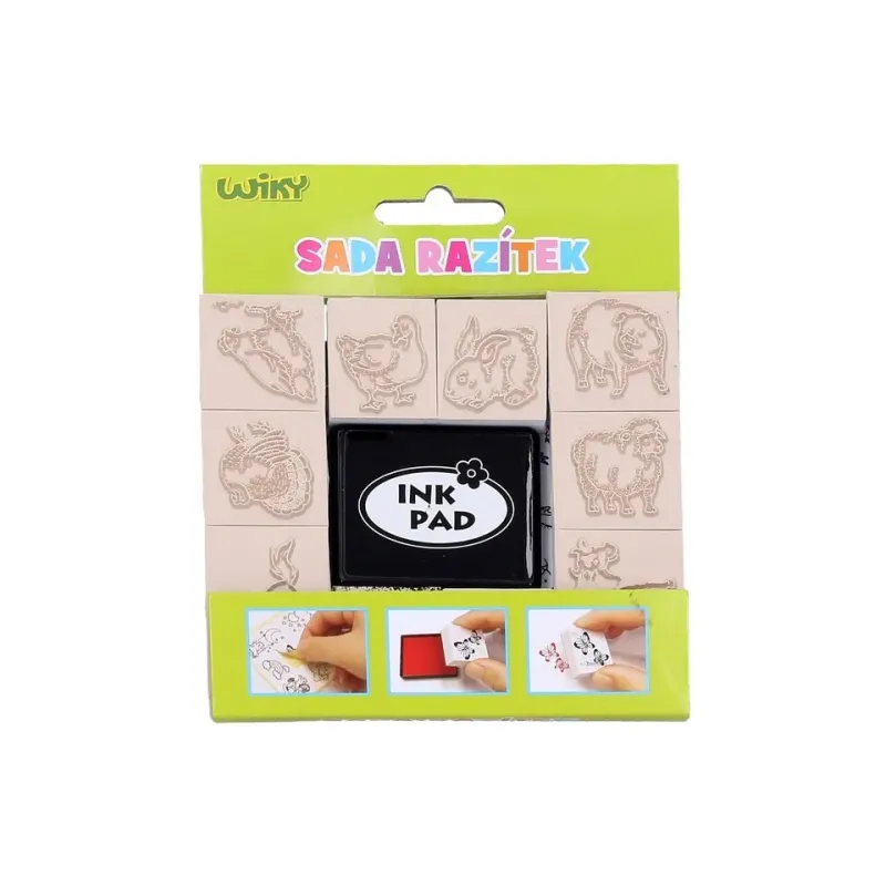 Sada obsahuje : 10 x razítko, nálepky, poduška na namáčanie pečiatok