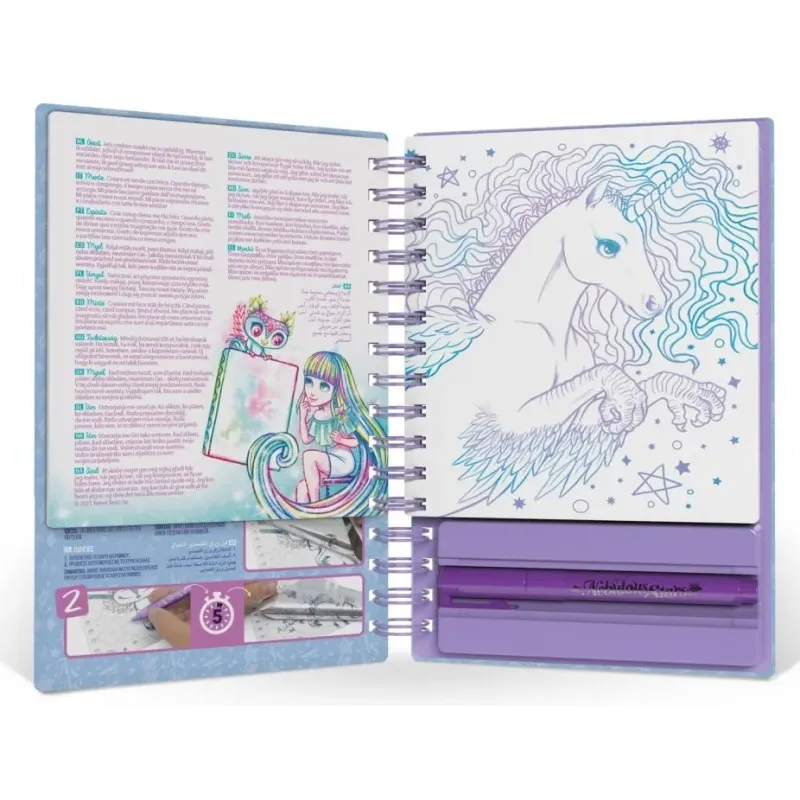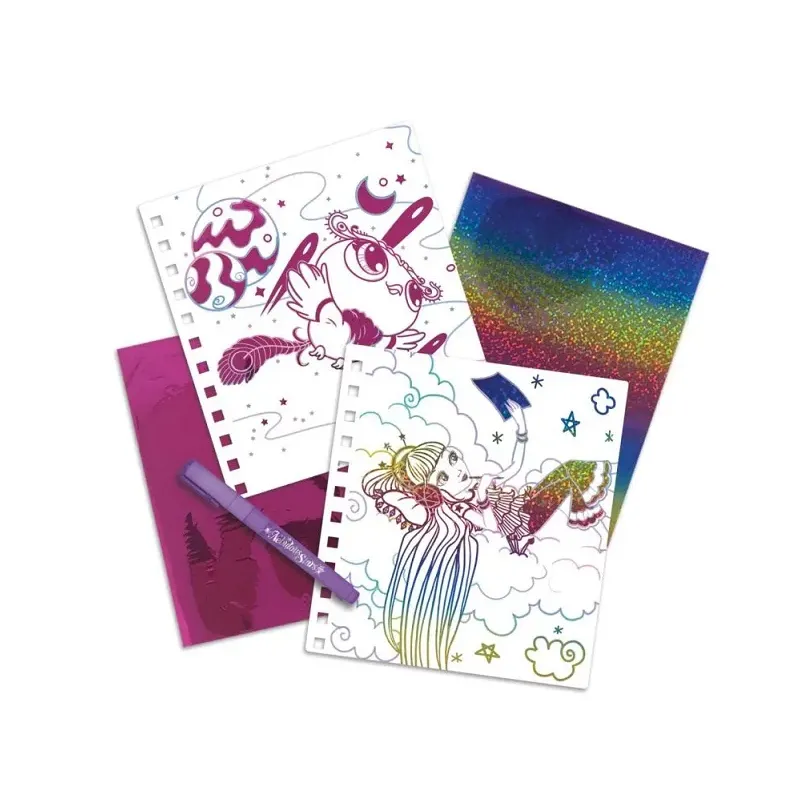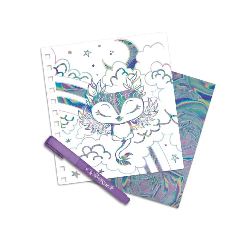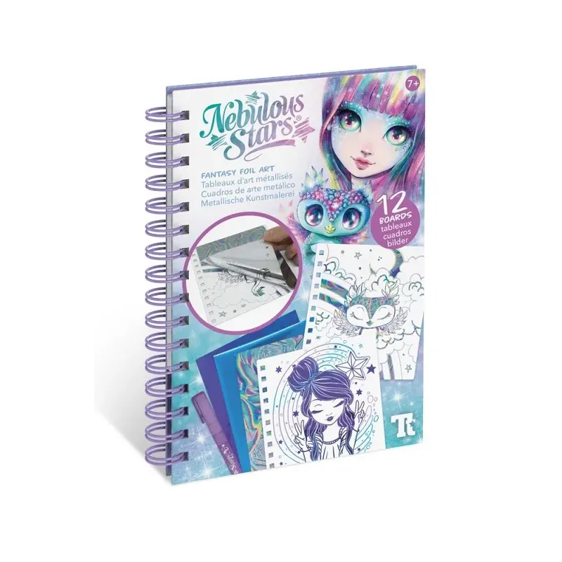 Nebulous Stars Fantasy tvorenie pomocou fólie. 12 kreatívnych obrázkov, 12 listov fóliového papiera, fóliové lepiace pero, pokyny, príbeh Isadory.