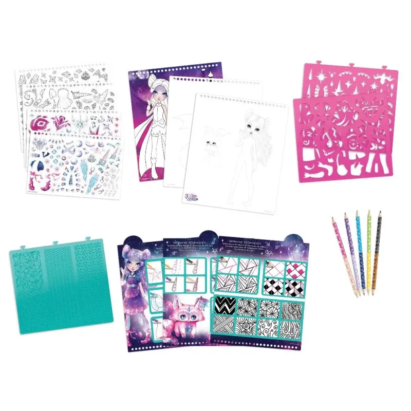 Pripravte sa s nimi na fantastickú kreatívnu cestu.Balenie obsahuje: 45 stránok náčrtku80 vzorov na šablónach3 plastické vzory na šablóne300 ks nálepiek5 farebných obojstranných ceruziektechniky kreslenia, návod a príbehy hviezd