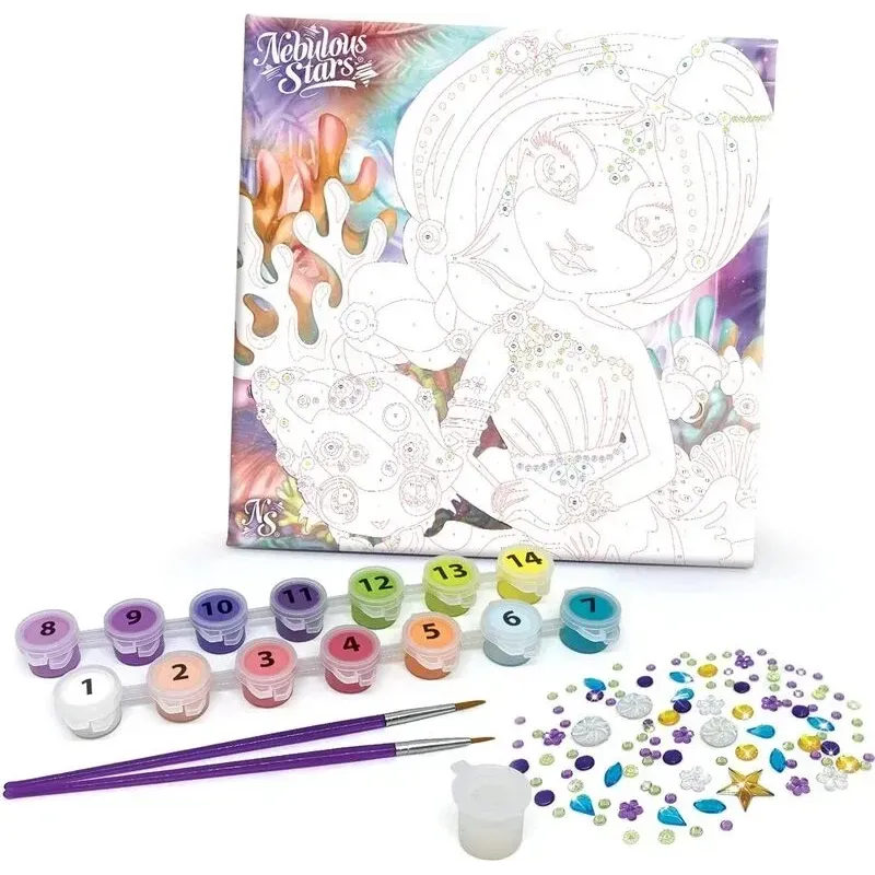 Nebulous Stars Kreativné tvorenie Coralia a Lyria.Klasická aktivita založená na maľovaní podľa čísel na tlačenom plátne s dreveným rámom.