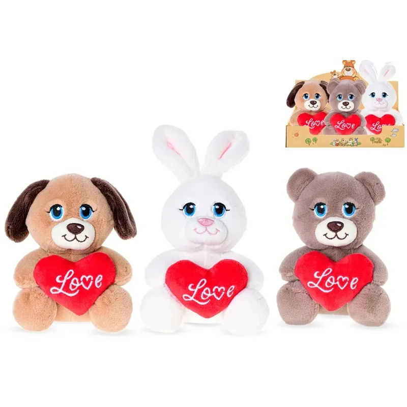 Zvieratko plyšové sediace so srdiečkom 15 cm UŽ IBA MACKO!