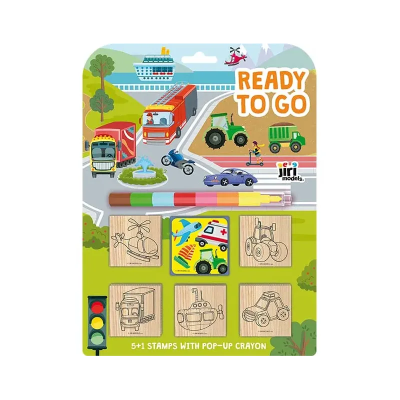 Set obsahuje 5 ľahko uchopiteľných drevených pečiatok, farebnú podušku s obľúbeným motívom a sedemfarebnú skladaciu voskovku na vyfarbovanie.