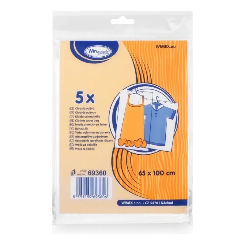 Ochranný obal na odev. Rozmery: 65x100 cm. Balenie obsahuje 5 kusov chráničov na oblečenie.