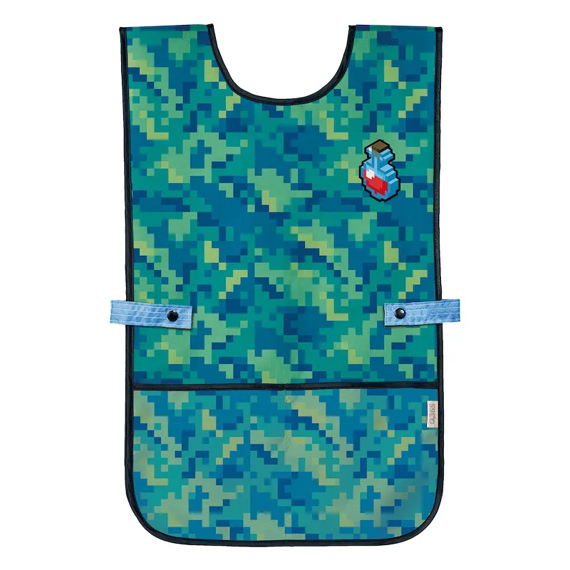Praktický strih zásterky na výtvarnú výchovu pončo, ktorá jezapínateľná na cvoky – dieťa nemusí zásterku zaväzovať na chrbte,cvokmi si jednoducho nastaví veľkosť okolo pásu a zároveň má vďakanovému strihu chránenú väčšiu časť tela.