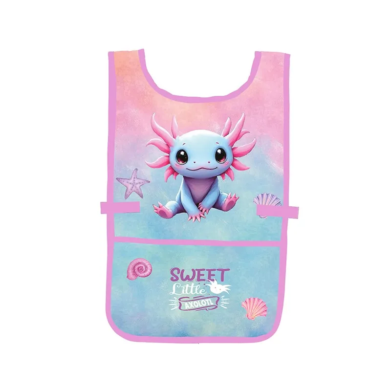 Zástera pončo do výtvarnej výchovy či na iné tvorivé aktivity. Obliekanie cez hlavu, po stranách zapínanie na druk. Vpredu jedno priestorné vreco.