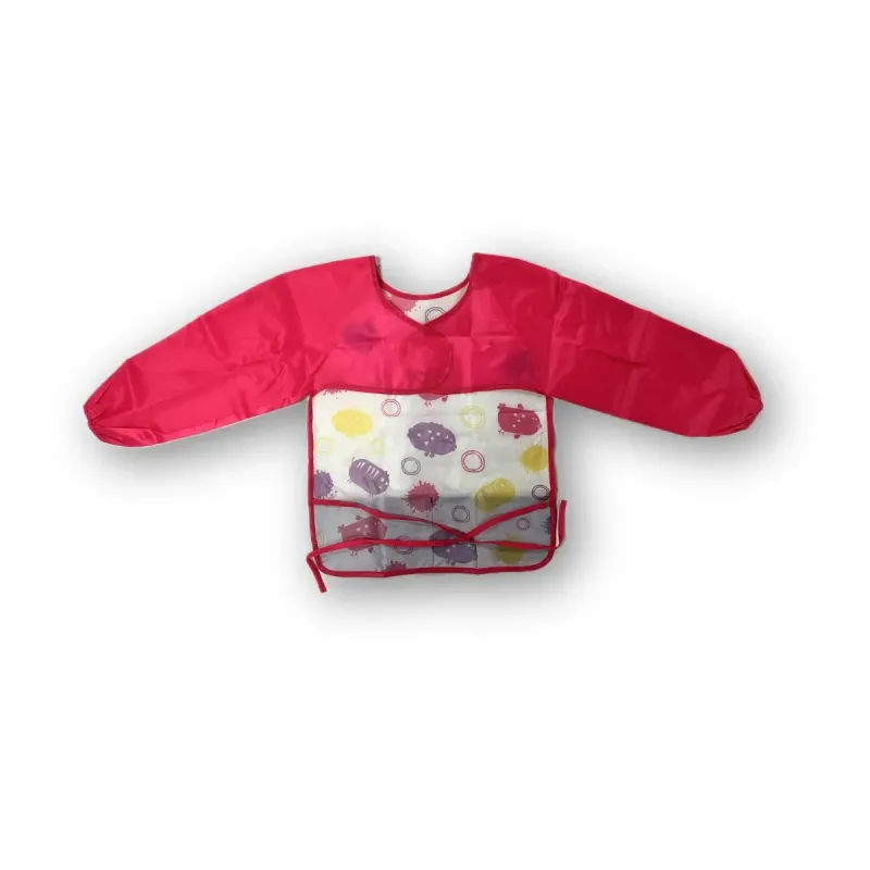 Zástera na výtvarnú výchovu s dlhými rukávmiv ružovej farbe.