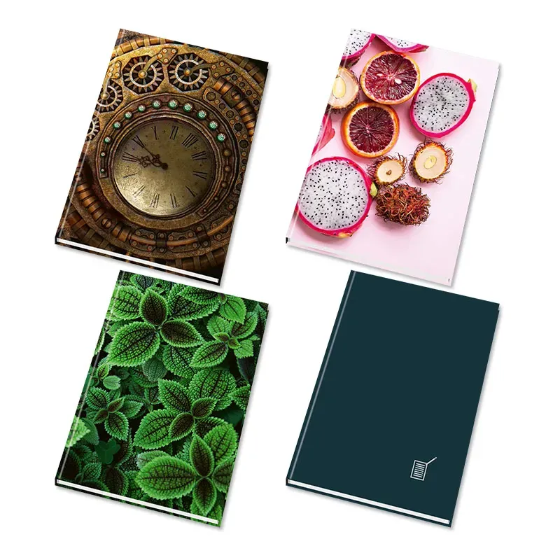 Záznamová kniha s bezdrevným papierom v pevnej väzbe s leskloulamináciou, dodávané v mixe motívov.