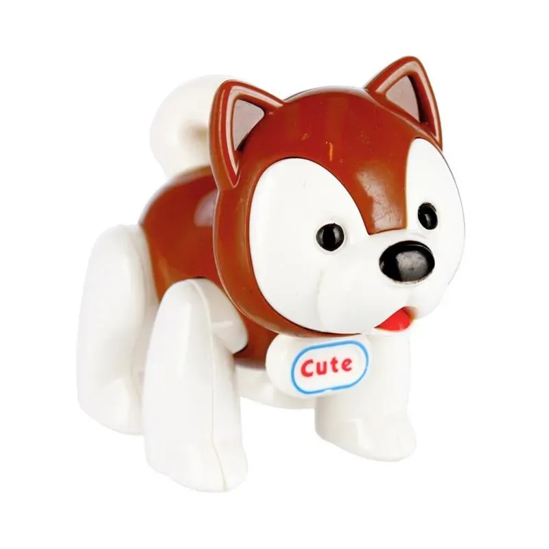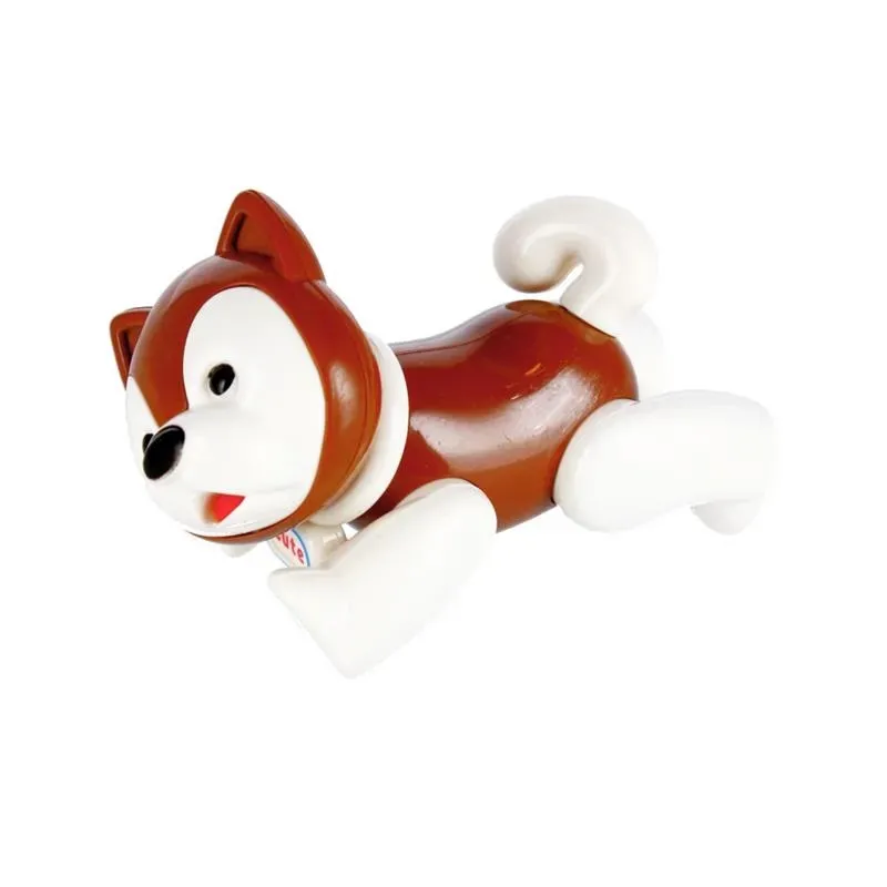 Psík hnedej alebo šedej farby je vyrobený z kvalitného plastu.