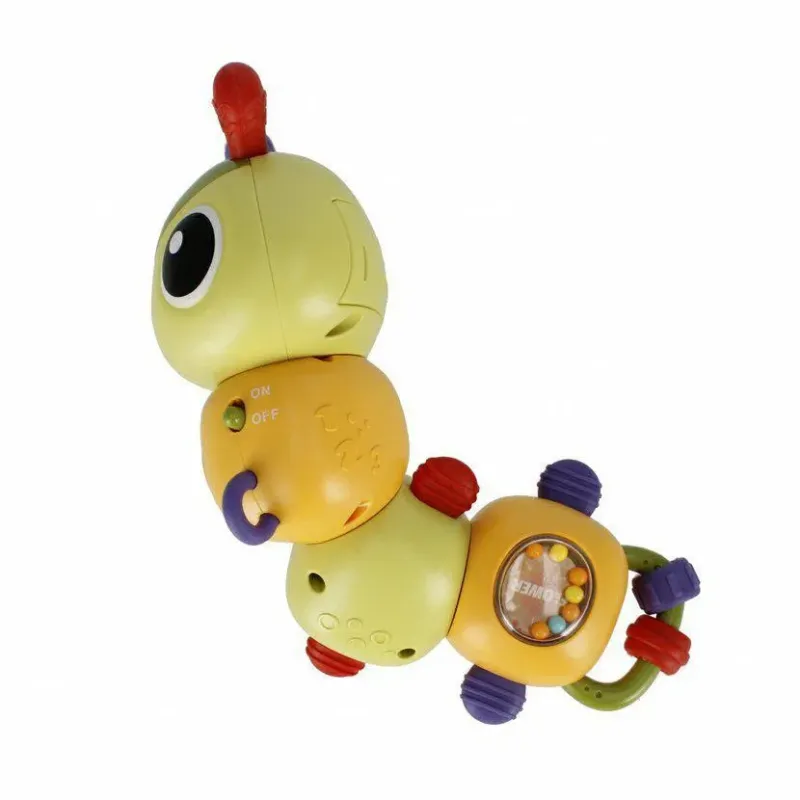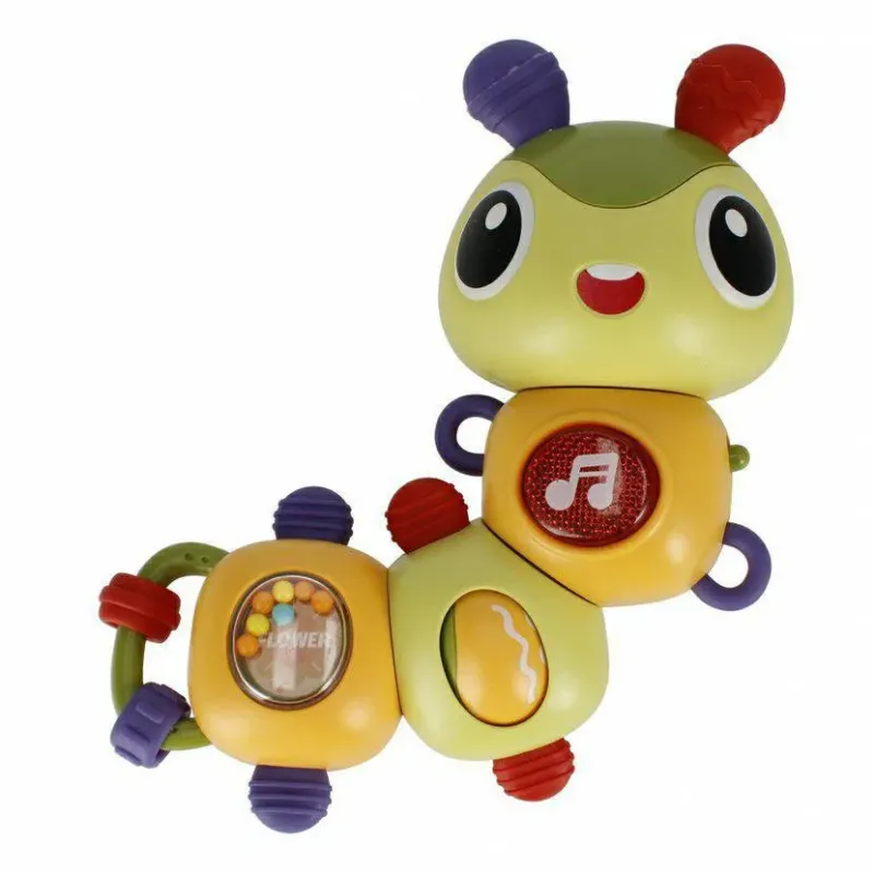 Interaktívna hudobná húsenica, hračka, ktorá slúži ako hrkálka, hryzátko a hracia hračka.