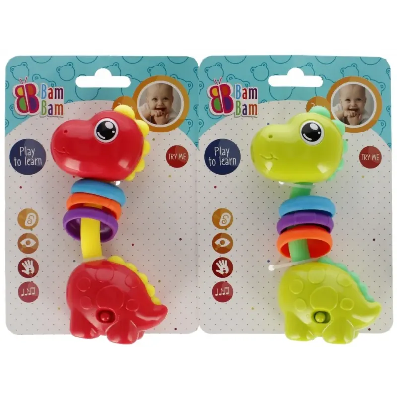 Hračka Dino je dostupná v dvoch farbách: zelenej a červenej