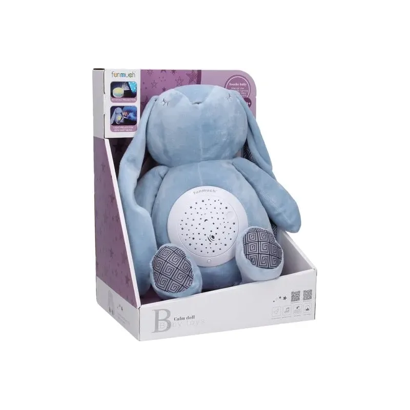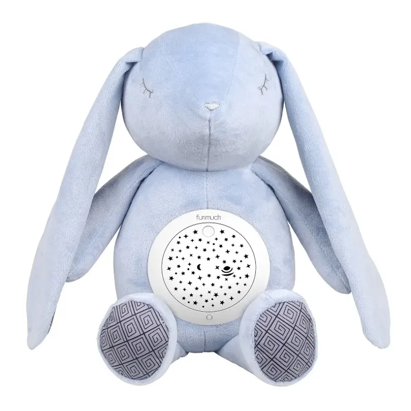 Zaspávací zajac s projekciou.Projektor na brušku zajaca svieti, hrá a otáča sa.
